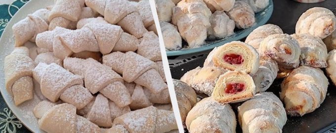 A tésztát vékonyra kinyújtjuk, és hosszú háromszögekre vágjuk. A széles részre tegyük a tölteléket. A meggyes bagel nagyon finom. Tekerjük fel a tekercseket, és helyezzük pergamenre bélelt tepsire. Süssük 180 fokra előmelegített sütőben körülbelül 15 percig. Amikor a kész kekszek kihűltek, mártsuk őket porcukorba.