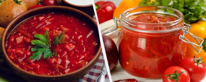 Hasznos és ízletes öntet üvegben lehetővé teszi, hogy 20 perc alatt elkészítse a borscsot. Borscs öntet télire káposztával és paradicsompürével A zöldségszezon
